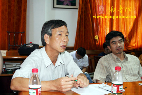 会上,南普陀寺修建性详细规划项目负责人、厦门市城市规划设计研究院王唯山院长从寺院修建的项目背景、技术路线、现状分析等方面对在座各位进行详细解说,并用幻灯片加以图解;再提出几个主要问题征求寺方的意见;最后,他还列出四个初步设计方案供大家参考。我寺主要班首执事在会议上踊跃发言,纷纷提出自己的看法 。方丈则悟大和尚一一细听之后,说到:召开本次会议主要是希望寺院主要班首执事对我寺整体规划提出宝贵意见,他还强调了整体规划对我寺的重要性和紧迫性,并总结出修建方案要注意的五个要点。黄镇辉处长认为寺院的这个整体规划是很有意义的,也是很有必要的,对寺院形势的发展非常有利,市民宗局也非常重视和支持这项工作,希望寺院的修建规划要立足于长远,考虑到各方面的因素,尽量做到布局合理,也应注意尽量不造成资源浪费,把南普陀寺建成花园式的美丽寺院。
