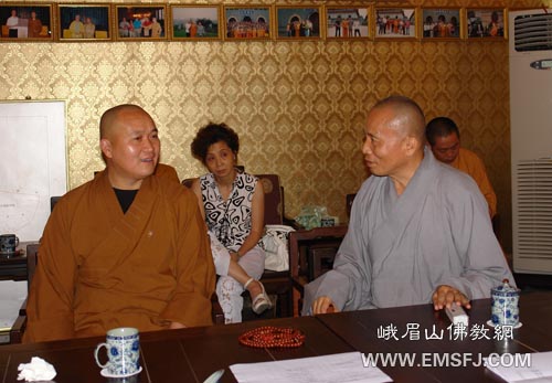 台湾十方禅林住持首愚大和尚一行于6月29日晚上到达峨眉山大佛禅院,峨眉山佛教协会永寿会长引领大佛禅院两序大众热情接待了首愚大和尚一行,并就7月1日——7日的准提法会具体事宜等进行了亲切的座谈交流。