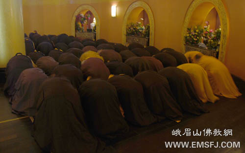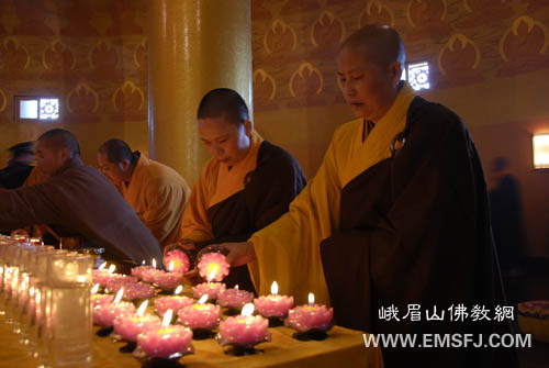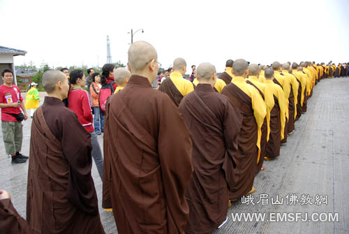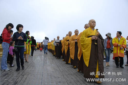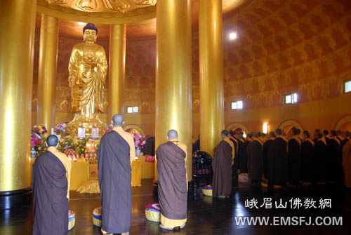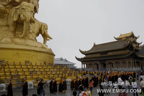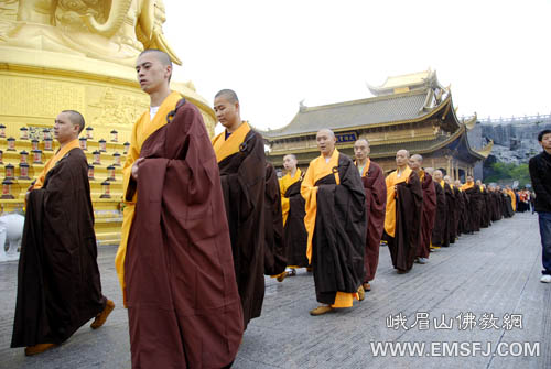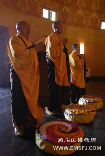 6月21日,峨眉山佛教协会组织全山100多位法师在峨眉山金顶华藏寺举行大型祈福法会,为灾区祈祷,为祖国祝愿,为奥运祝福!