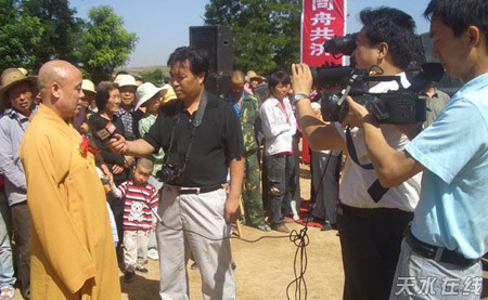 演觉法师接受记者采访