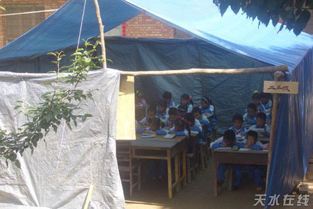 目前,学生们正在帐篷里上课