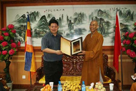 2008年6月18日,国家宗教局王建司长一行六人在陕西省宗教局张宁岗局长的陪同下到扶风县法门寺视察关于第二届世界佛教论坛文物展一事,受到法门寺智超法师、洪利法师、智雄法师、慧慈法师、源圣法师的接待。双方对文物保护一事进行了交流。
