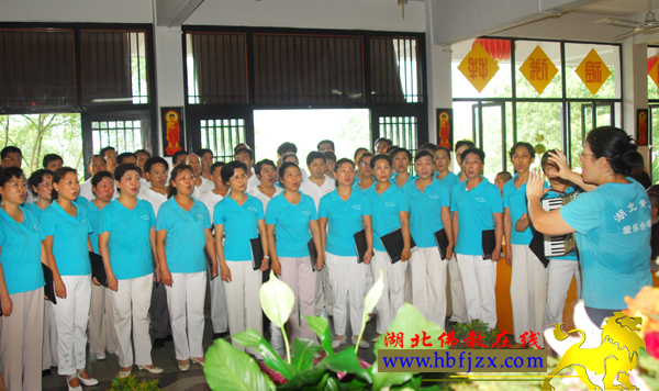黄石爱乐乐团今天也随喜用梵音供养三宝,结缘大众。他们用优美的歌声,深情演唱佛教歌曲,弘扬佛教精神,赢得大家一阵又一阵掌声。