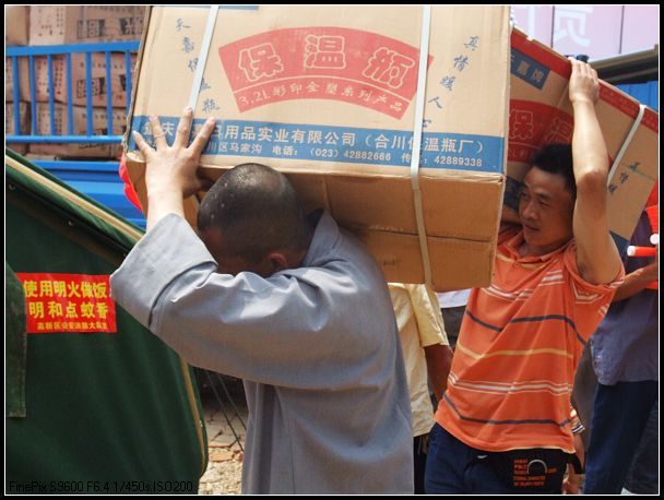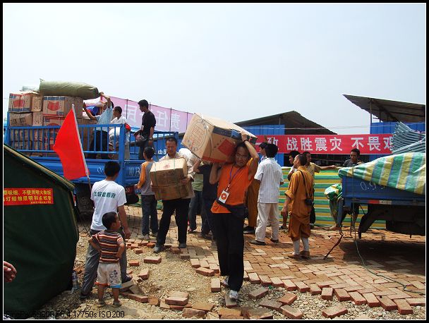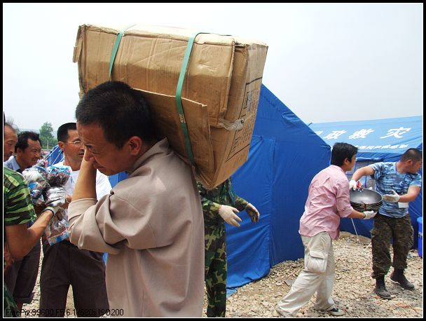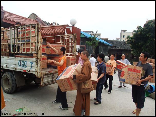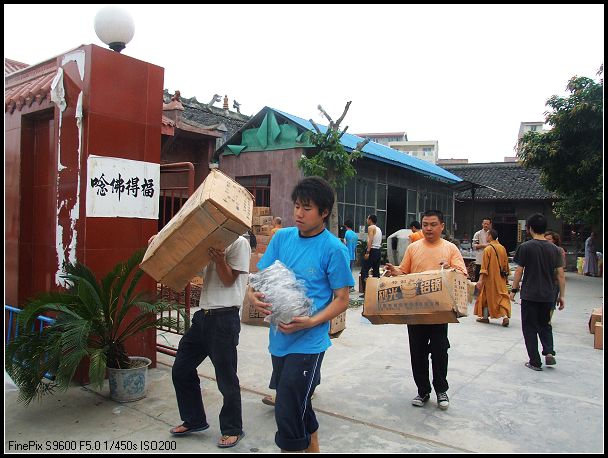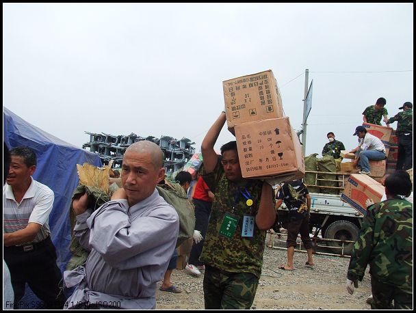 目前,灾民大都被集中在几个主要的安置点上,这些灾民由于地震的原因不仅无家可归,而且一无所有,连基本的生活必须品锅、碗筷、桌子、洗衣粉、毛巾,牙膏,牙刷等都没有,因为受灾的人员太多,政府目前能给他们提供的只是帐篷和方便面,为了给政府减轻些负担,让这些灾民能够快些自己做饭,解决基本生活问题,东林慈善功德会根据灾民的需要从基金会拨了30万元购买锅、碗筷、桌子等生活必须品发放给部分灾民,让他们能够自己解决温饱问题。为此,5月25日晚上,功德会的志愿者们便从重庆、成都、绵阳等各个地方开始购买价值近30万元的生活必须品,开始了忙碌而且辛苦的备货,装货工作。26日一大早,在慈善志愿者与国内一些大学生志愿者们的一起齐心协力下,价值近30万元的物质运了三趟共9卡车全部送到了黄土镇、永兴镇、九洲体育馆等灾民集中地,发放给那些灾民,让他们能够自己解决一些生活问题。对于这些灾民来说,目前他们最重要的是解决生存问题,其次才是发展的问题,先安身才能立命!