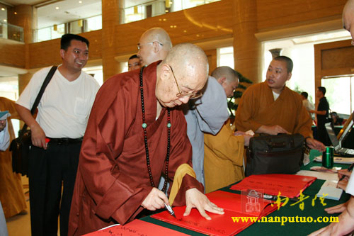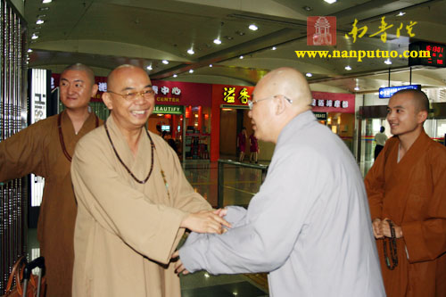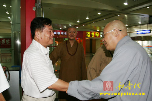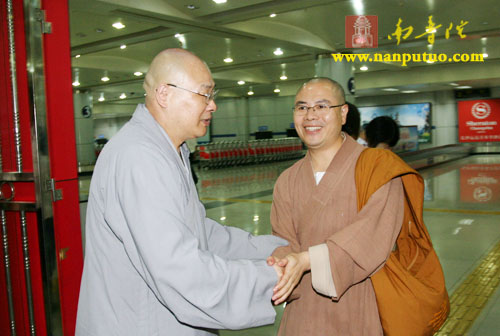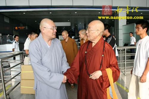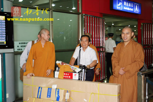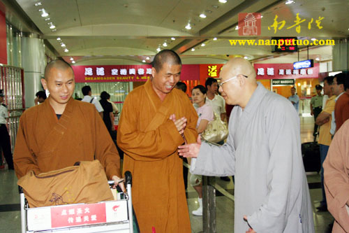 上午8时30分,泉州佛教协会副会长、泉州南少林寺方丈常定大和尚,闽南佛学院办公室副主任界淞法师、陈炳煌先生,厦门虎溪岩寺副寺向协法师等一行八人飞抵长沙黄花机场,先行到达的辽宁省大连正觉讲寺监院辉振法师等在机场迎接其一行的到来,并送往华雅国际大酒店下榻。