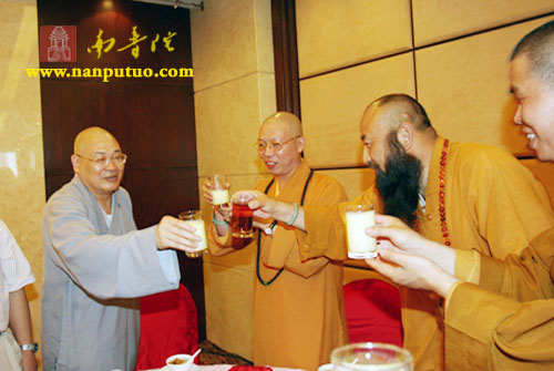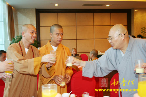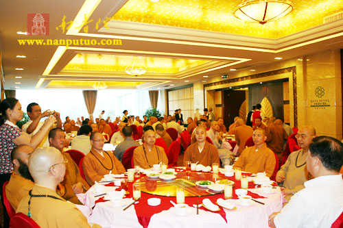 傍晚6时30分,圣辉大和尚于华雅国际大酒店雨华厅设欢迎宴,对诸山长老、嘉宾的到来,以表谢意。