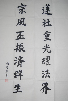 应东林莲社礼请,中国佛教协会副会长、江苏省佛教协会会长、苏州市佛教协会会长、苏州灵岩山寺方丈、明学老和尚为东林莲社题字 ,老和尚以此鼓励我们要更好的满足广大信众对佛法的渴求,积极加强基层及农村弘法,让更多人对佛法和净土法门竖起一个正确的知见,更好的以净土文化利益众生!