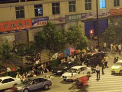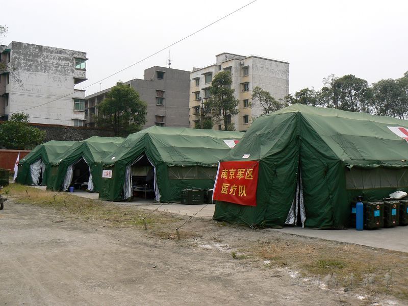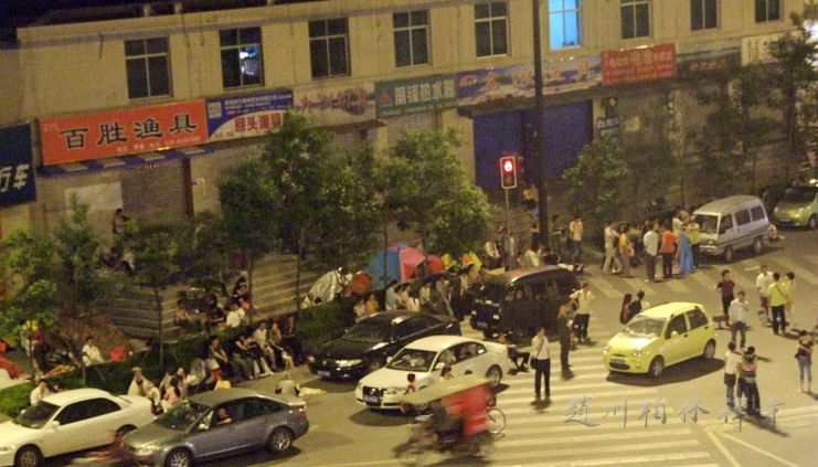 从机场至川大的途中,我们看到这座曾有着“东方夜巴黎”美誉的大都市已经失去了往昔的繁华。高耸林立的大厦里看不到一点光亮,街道两边停满了各种车辆,也有很多群众正迁往郊区。因为人们害怕可能突然袭来的余震,就在路边的车里过夜,或者到郊区避难。而在街道两旁的绿化带里则伫立着许多帐篷,其间席地而卧的人也不在少数。而车内收音机里则不时地传来四川人民广播电台播报的中国地震局发布的地震预测消息。据说,在19号和20号两天内还会有6到7级的余震。当时,我只是觉得有点小题大做了。但是,后来的经历却改变了自己的这种想法。本来不过半个小时的路程,而我们竟走了一个多小时。直到晚上十二点半,我们才到达四川大学。