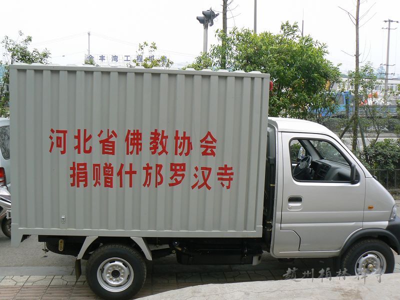 八点多,在一名居士引领下,我们前往成都市汽车交易中心。后来,我们购得了一辆价值五万八千多元的小型箱式货车。因为通往灾区的多处路段刚刚被疏通,大型货车行驶困难。加之,蜀地气候潮湿多雨。所以,用这种货车运送救灾物质,最适合不过了。