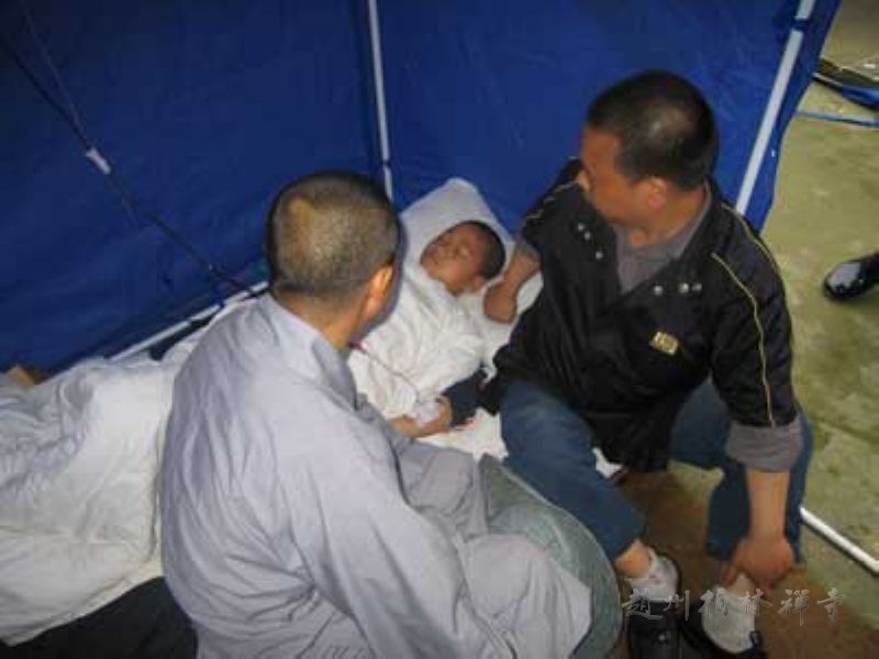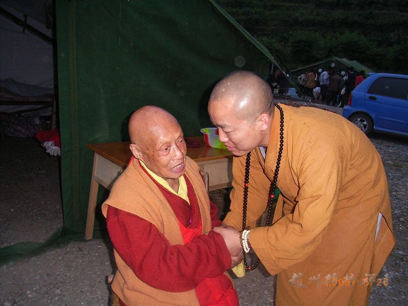 在罗汉寺内政府特设的“抗震救灾指挥部”里,大和尚一行还见到了国家宗教局副局长齐晓飞、国家宗教局办公室主任王建、四川省宗教局局长王增建以及德阳市抗震救灾指