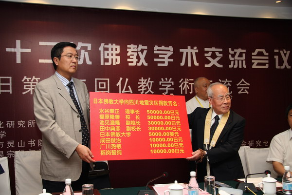 会议开始前,全体代表默哀一分钟,以表达对四川大地震遇难群众的哀思。日本佛教大学还通过中国佛教协会向地震灾区捐款5000美元,参加会议的日方代表个人也纷纷慷慨解囊,分别向四川灾区捐助了数目不等的款项,表达爱心。