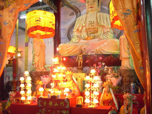 5月24日下午,举行了隆重、庄严、肃穆的净坛仪式,愿坛场清净、法会圆满、为众生祈福。整个法会共分大坛、内坛、净土坛、楞严坛、华严坛、法华坛和诸经坛七个坛场。连续诵拜七天。期间还有多场焰口施食、蒙山施食、三时系念、斋天、放生等法事活动。虽然已到三十好几度的高温天气,法师们也已汗透衣衿,但无不以虔诚之心诵经礼佛。祈愿墙上也写满了众人真心的祝福,祈愿佛佑中华、灾区重建,祈愿遇难亡灵往生极乐、脱离苦难。