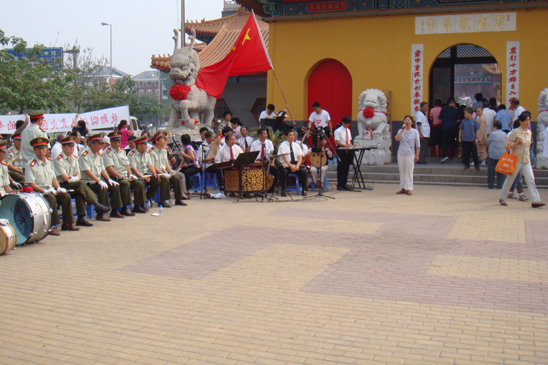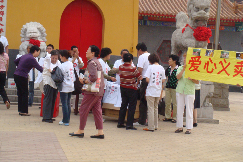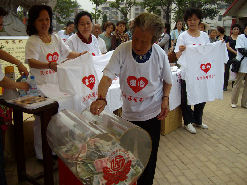 2008年6月4日,正值农历五月初一,天津荐福观音寺举行义卖爱心T恤募集善款活动。从早上八点开始,奉献爱心,义买者络绎不绝。天津弘一佛乐演唱团合唱队、舞蹈队、民乐队、军乐队义演奉献了高水平的节目,包括“爱的奉献”“让世界充满爱”“为了谁”“爱的家园”等脍炙人口的节目。此次活动主题是“救助地震灾区受损的寺院、受伤的僧众”全天共募集善款11万元。住持妙贤法师也将于6月5日第二次前往四川灾区,对四川尼众佛学院进行捐助。