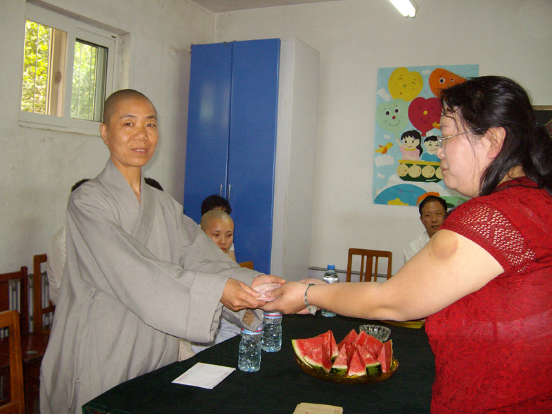 2008年5月29日,“六一”国际儿童节即将来临之际,天津荐福观音寺大知客义辉法师、王永武主任等来到河东区智弱学校进行慰问并和残障儿童一起联欢。并捐款2000元及80套儿童装牛仔服。