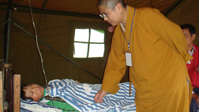 2008年5月29日,中国佛教协会、四川佛教协会在成都宝光寺为汶川地震灾区举办祈福追荐赈灾大法会。妙贤法师代表天津佛教慈善功德基金会亲往参加并追赠善款30万元。随后,前往德阳、什邡洛水镇、红白镇重灾区实地慰问、救助,亲历了灾区一幕幕震撼的场景。感人至深、催人泪下。让我们一起延续爱心、弘扬慈悲、救助苦难、点亮希望!