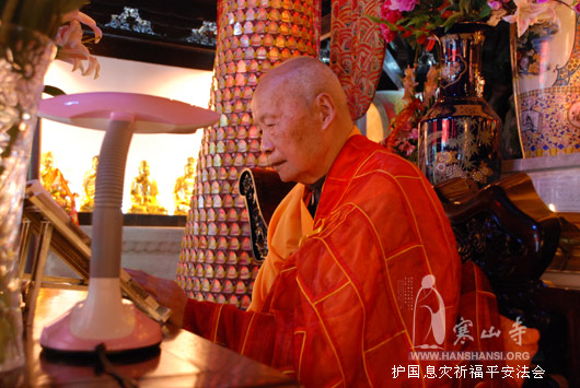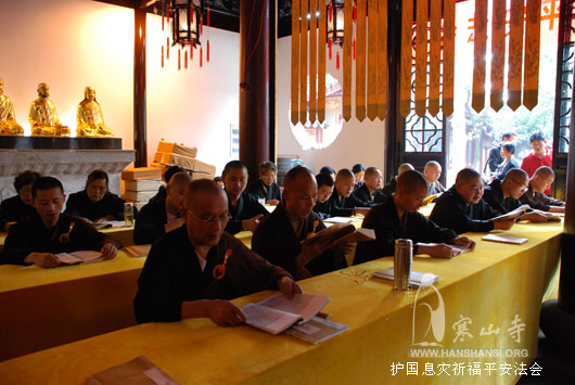 寒山寺法主和尚性空长老主持祈福法会。据悉,寒山寺“护国息灾祈福平安法会”将持续2天,由寒山寺僧众、居士,一起讽经回向。法会期间还举行了为灾区人民捐献悲募款活动,仰祈诸佛菩萨,福佑中华。