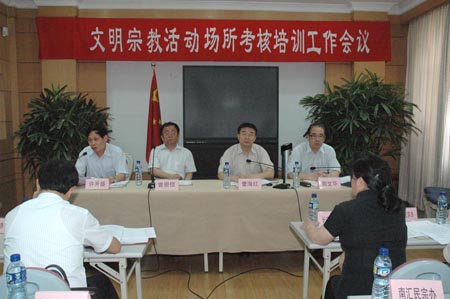 2008年6月19日上午,上海市民族宗教委召开文明场所创建考核工作培训动员大会,参加大会的有市五大宗教团体和有关区县教职人员、各区县民宗办分管领导和工作人员以及本委参加考核的工作人员共90多名。市文明办曾崇信处长到会指导,市民族宗教委副主任曹海红提出考评工作要求。区县指导处处长周文华主持会议。