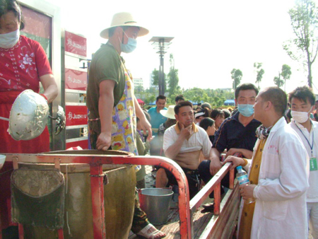 华岩寺等三个寺院在灾区开展施粥活动