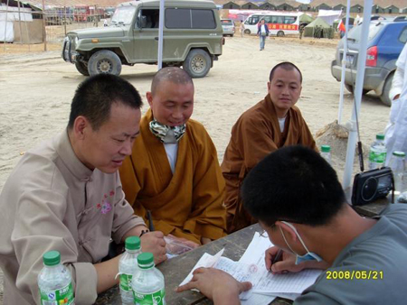 道坚法师带领赈灾队伍在平武抗震救灾