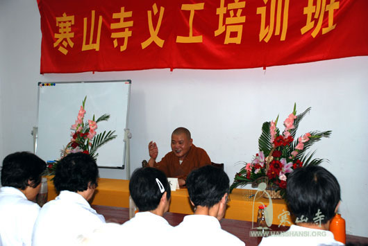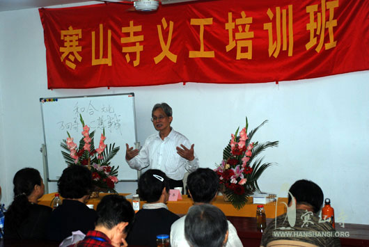 寒山寺弘法力度的加强和慈善事业的发展,在社会上引起广泛影响,有越来越多的信众加入到弘法队伍。为更好的适应寒山寺的发展,在大和尚的支持下,由客堂组织寺院全体义工进行培训。意在使义工们进一步了解佛学基础理论,真正做到工作与修行相结合,珍惜寒山寺为义工所提供的良好的积功累德的平台,更好地为寺院、为社会服务。此次培训活动,邀请文化研究院教授、寒山书院法师担任授课老师。