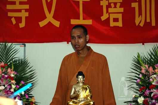 此次培训活动,从2008年6月11日-6月20日止,为不影响寺院的正常工作,客堂将寺院的义工分班,义工们轮流听课。每班授课12课时。