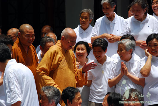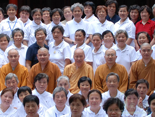 培训结束,寒山寺法主和尚性空长老与培训班义工合影