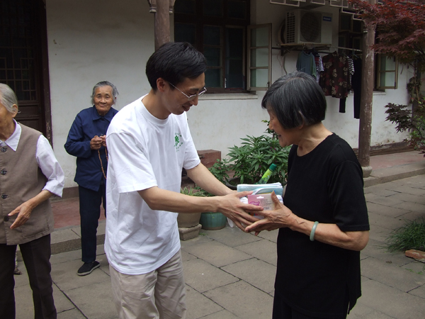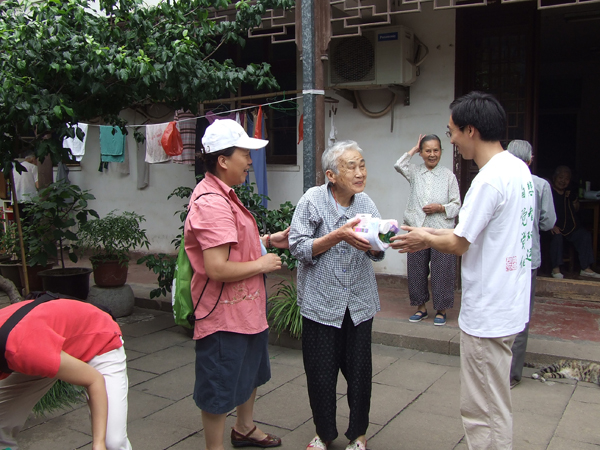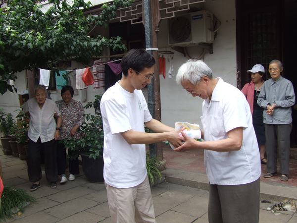 2008年6月8日端午节,慈善护生组前往安养院慰问老人。为老人们带去了夏令生活用品。安养院宋居士对慈善护生组坚持每月关怀老人表示感谢,赞叹我们能够学修结合,将菩提心落在实处,并希望我们长此以往地坚持下去,让我们慈善护生组的每位成员都能成为关爱生命的使者。