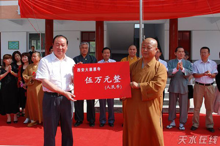 西安大慈恩寺向龙道华彩天水希望小学捐赠5万元人民币