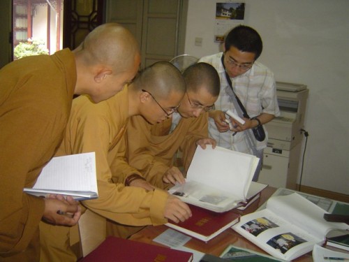 贤甲法师一行在观云法师的带领下参观了西园寺,对西园寺出家众人数、常住人数、寺院建设情况、弘法的具体方式进行了了解、并详细参观学习了西园寺档案室,表示西园寺档案室的工作制度、各类人员职责、借阅保密制度等非常值得参考和借鉴。