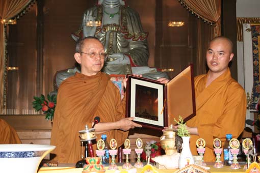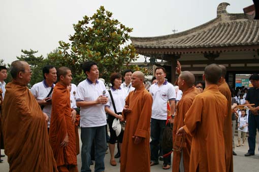 2008年6月9日,印尼南传佛教主席BHIKKHV SV KHEMO MAHATHERA率团一行72人来法门寺参观,由法门寺智雄法师、果清法师、慧慈法师接待,进行了和谐的交流,主要谈到了两国之间的佛教活动相同或是不相同的地方,又了解了法门寺的资金来源及此次对四川灾区有何帮助,当了解到法门寺在学诚方丈的带动下,连同北京龙泉寺、福建广化寺、及仁爱基金会一共捐赠了近600多万,他们听了很高兴也给灾区集体捐赠了近8000元,又给寺院捐赠了4000多元。最后在很愉悦的交谈中结束了此次参观活动。
