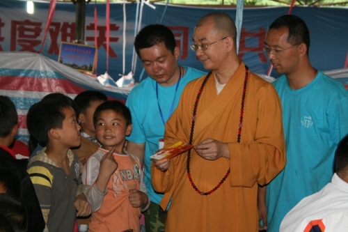 六一儿童节前夕,在成都参加超度祈福法会的学诚法师十分重视灾区孩童的教育问题,一连两天赴仁爱基金会设在都江堰、绵竹的两个学堂视察。学诚法师说,这段时间是很关键的时候,灾后重建工程的主力还得靠国家的力量,基金会所做的,只能是体现一种佛教的精神,尽我们一份绵薄之力而已。