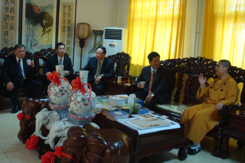 2008年6月11日,台湾妈祖联谊会会长、财团法人大甲镇澜宫副董事长郑铭坤先生一行二十人来到天津荐福观音寺参观访问,住持妙贤法师热情地接待了大家。