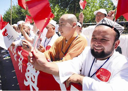 奥运火炬在新疆传递 宗教界人士为奥运加油