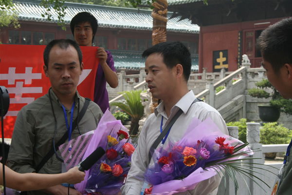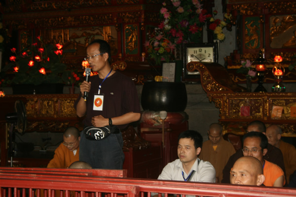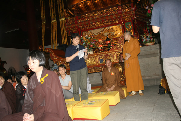 大家在大安法师的带领下在大雄宝殿拜了佛,并畅所欲言谈了自己的感想,东林寺来果法师说到:如果没有到现场,真的感受不到生命是那么的无常,那么的脆弱,一刻之间死了成千上万的人,通过这次到四川灾区,觉得念佛法门真是太好了,感谢阿弥陀佛的大愿,慈悲接引苦难众生。净土宗研习班的代表也发表了自己的感言,谈到这次的国难来临之际,每个人的善心都被激发了出来,当他们拿着做好的饭菜发放给灾民的时候,许多人都是含着眼泪说:师父,你们真是太好了!他们的内心充满着激动和感恩之情。作为师父,他们只希望这些灾民能够吃饱,吃好,将来重建家园,有个安住的地方,好好的生活,好好的念佛求往生到西方极乐世界。而慈善医疗队的负责人邹医生也谈到这次大地震,每个人都应该为灾区的人民排忧解难,尽自己的一份心力。东林慈善的志愿者仁鹏居士等人也发表了自己作为志愿者的感言,并接受了九江电视台、浔阳晚报记者的采访。通过这次赈灾活动,每个人的感想体悟都不一样,但有个共同点是都觉得生命很脆弱,人生很无常,要珍惜现在所拥有的生活。