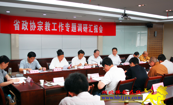 2008年7月3日上午,湖北省政协宗教工作专题调研汇报会在省民宗委办公大楼召开。湖北省政协副主席陈春林出席会议并作重要讲话,省政协常委、省政协民宗委主任李传锋,省政协常委、省政协民宗委副主任、省政府民宗委主任谭徽在,省基督教三自爱国委员会主席汪振仁,省政协常委、省政协民宗委副主任、省道协会长吴诚真道长,省政协常委、省政协民宗委副主任、省佛协副会长见忍法师,省政协委员、省政协民宗委副主任周瑞超,以及省民宗委副主任黄贤友等相关部门负责人参加了会议。