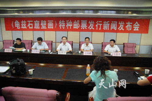 6月30日,《龟兹石窟壁画》特种邮票发行新闻发布会在新疆邮政公司召开,新疆邮政公司副总经理张利平介绍了《龟兹石窟壁画》特种邮票选题、申报、设计、发行等情况。新疆邮政将通过发行《龟兹石窟壁画》特种邮票,以邮票为载体,以邮票独特的宣传方式将历史上曾是联系和沟通亚欧大陆,中西文化交汇的古丝绸之路上的重镇——龟兹古国悠久的历史文化、丰富的文化遗产和独树一帜的龟兹石窟艺术展示给全国乃至全世界。