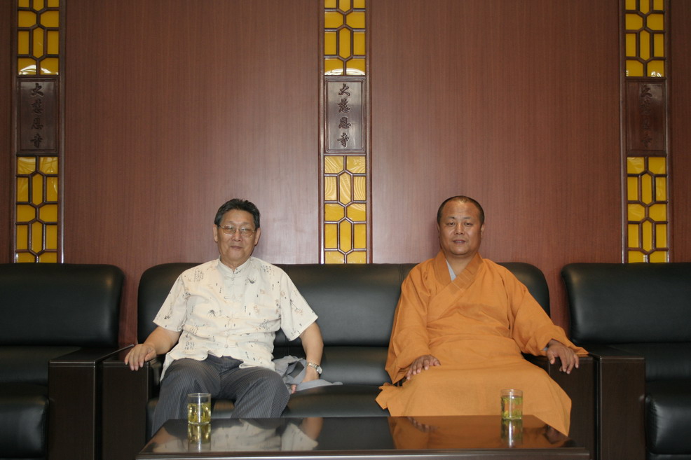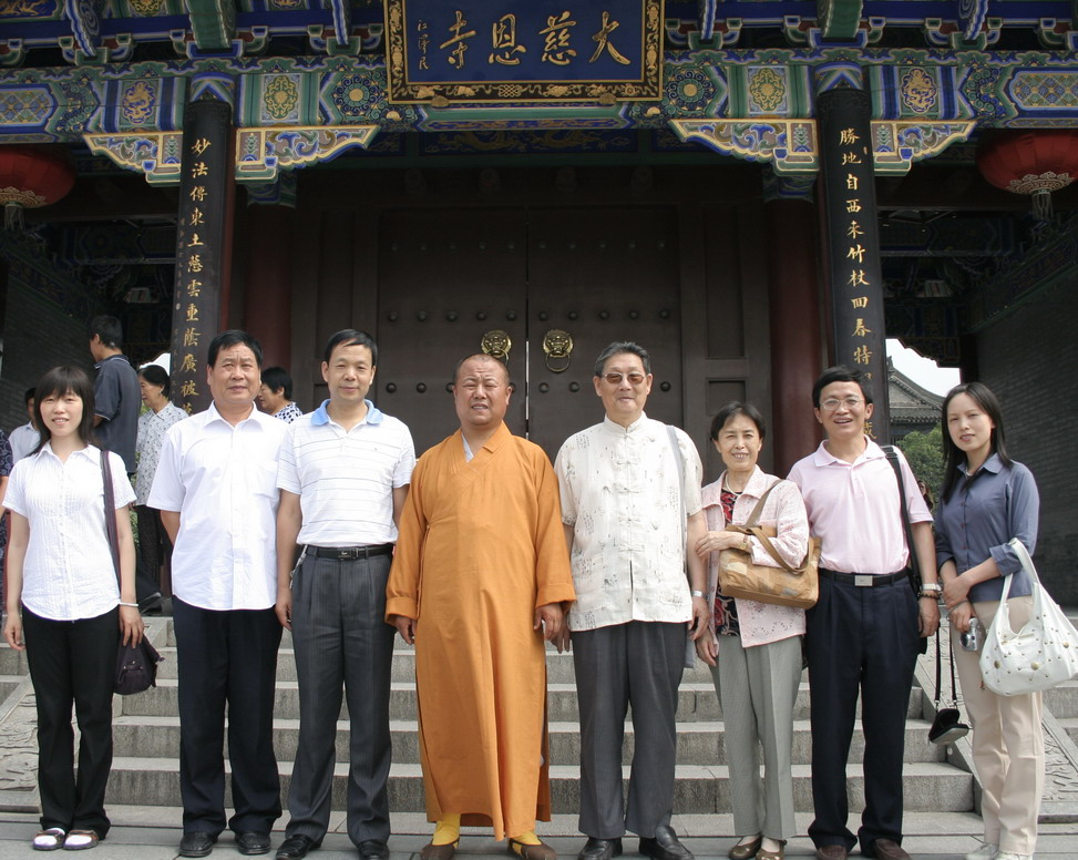 应西安大慈恩寺方丈增勤大和尚的邀请,2008年7月23日,北京大学宗教研究所所长楼宇烈教授携夫人一起访问了西安大慈恩寺和西安佛教研究中心。西北大学佛教研究所所长李利安教授、李海波博士、陕西师范大学佛教研究所所长吴言生教授、中国政法大学俞学明教授陪同楼先生访问。大慈恩寺监院传相法师热情接待了楼教授一行,并举行了简短的座谈。西安大西恩寺办公室韦主任等参加了座谈。传相法师代表增勤大和尚对楼教授的来访表示欢迎,并向楼教授详细介绍了大慈恩寺的现状和发展规划。楼教授对西安大慈恩寺的历史地位给于高度的肯定,对大慈恩寺的发展以及未来的蓝图表示赞许。座谈结束后,传相法师和韦主任带领楼教授一行参观了寺院和玄奘亲自监修的大雁塔。随后,西安佛教研究中心副主任李利安、吴言生和传相法师带领楼教授一行参观了西安佛教研究中心和西安茶文化研究会。李利安教授向楼教授一行介绍了西安佛教研究中心的基本情况,特别向楼教授介绍了雁塔论坛和首届长安佛教学术研讨会的筹备情况。楼教授对西安佛教文化研究中心的发展现状和发展设想表示肯定,对西安茶文化研究会的工作提出许多中肯的建议。李利安教授代表西安佛教文化研究中心对楼先生的来访和建议表示感谢。中午,大慈恩寺在天龙宝严素斋厅设宴招待了楼教授一行。