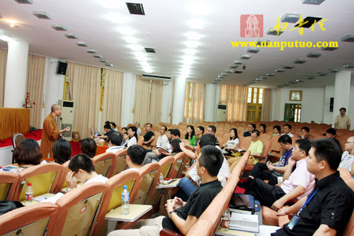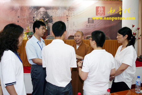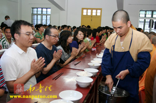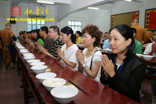 清晨4时30分,一部分学员跟随我寺僧众虔诚上殿,随后到五观堂用斋,希望从多方面了解和亲自体验佛门生活。上午8时,学员们聚集在南普陀讲堂,聆听方丈则悟大和尚的开示。大和尚巧用譬喻,深入浅出地解说佛法的基本理念和佛门的初步礼仪,并教其发愿、去除习气,强调说明佛教积极济世的精神本质,引导大家对佛教进行正面的了解。上午的活动,在传明法师和王雷泉教授与学员们的互动交流、提问谈心中愉快结束。
