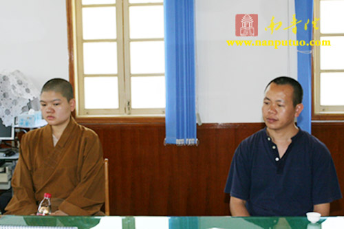 泰国籍本科毕业生果圆法师(左)、教务处老师林观潮居士(右)