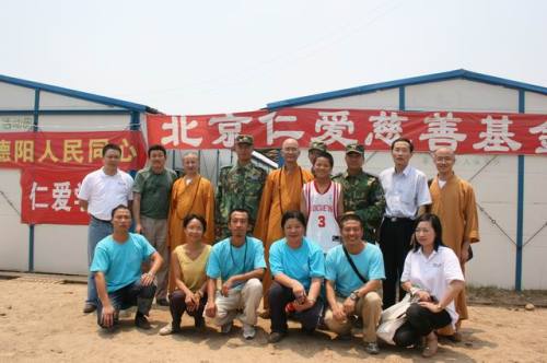 据了解,5.12汶川大地震发生后,仁爱慈善基金会在成都的志愿者灾后2小时就赶到绵竹汉旺镇参与救援行动,救出了很多受困的群众,得到了当地政府、解放军和群众的信任和欢迎。基于这个基础,仁爱基金会在5月16日整体入住绵竹体育中心灾民安置点,设立志愿者基地,全面投入了绵竹人民抗震救灾的洪流中,基金会本着导师学诚法师“创造条件,加强合作,量力而行,注重实效”的十六字方针,前后共组织了众多爱心机构、企业和近千名的志愿者,在九龙、广济、遵道、清道、齐福和土门等乡镇,发放了帐篷、药品、彩条布、生活用品、米面油,并覆盖到青川、都江堰、江油、安县及甘肃碧口等地,总价值近500万元。
