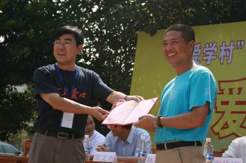 2008年7月7日上午,四川省绵竹市教育局和北京市仁爱慈善基金会在绵竹市富新镇第一小学联合举行了“让爱托起明天的希望”仁爱学村捐建交接暨“心在行动”绵竹教育援助计划启动仪式。
