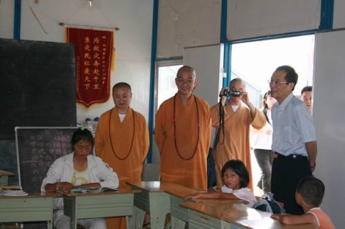 仪式结束后,学诚法师一行参观了仁爱慈善基金会捐建的几所学校。大家一致对基金会在极短的时间内,通过众多善心人士和志愿者的共同努力,建成了近万平米高质量彩钢架结构的校舍,给予了高度肯定和赞扬。