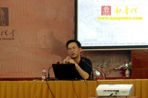 6月19日晚7时许,应闽南佛学院院长助理兼教务长传明法师邀请,闽院研究生导师、中国人民大学宗教学宣方教授在南普陀寺讲堂为闽南佛学院师生讲座。
