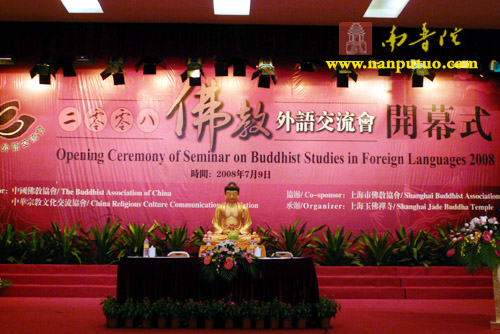 7月9日,“2008佛教外语交流会”在上海玉佛寺隆重拉开帷幕,这是我国佛教界自建国以来首次开展的外语交流会,海内外百余位佛教界代表共聚一堂,以英、韩、日、法等多种语言畅谈开展国际交流的经验、心得。参会者就“面向世界的中国佛教”和“中国佛教的过去和未来”两个主题展开积极的讨论与交流。