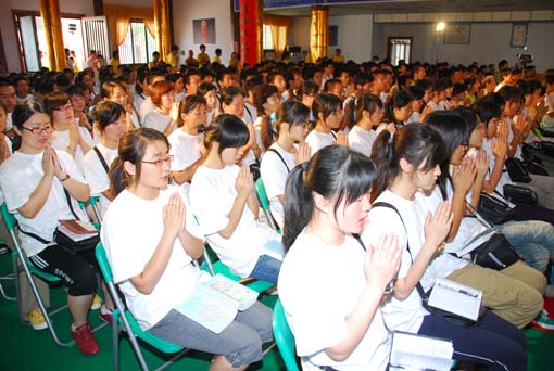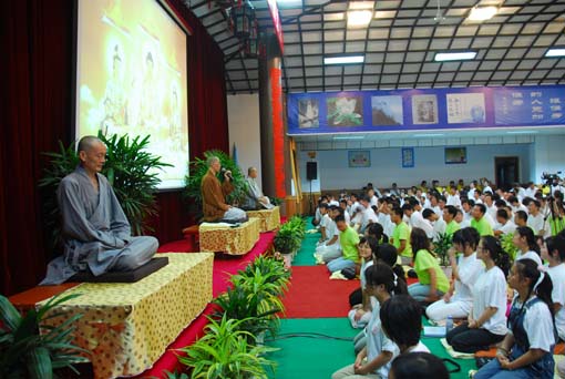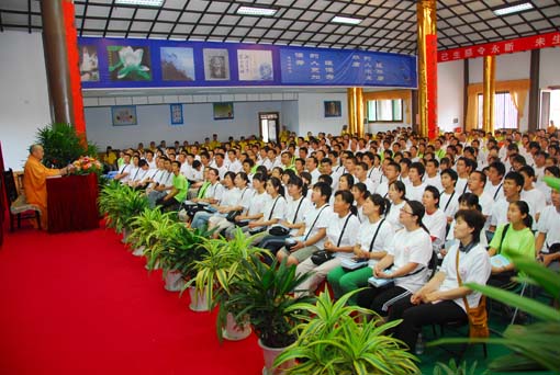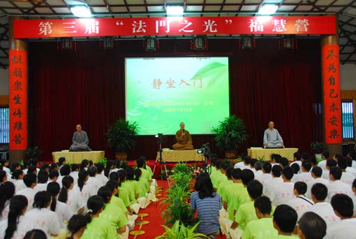 2008年7月16日,第三届“法门之光”福慧营正式开营的第一天,早上诵经后8时30分,由法门寺佛学院教务长贤空法师主讲的“建立自我,奉献社会”佛学讲座在法堂举行。贤空法师对于人生观、价值观等问题的开示,博得了学员们的阵阵掌声。最后,所有学员和义工集中到大雄宝殿前合影留念。