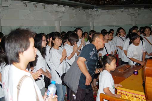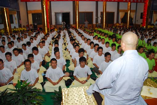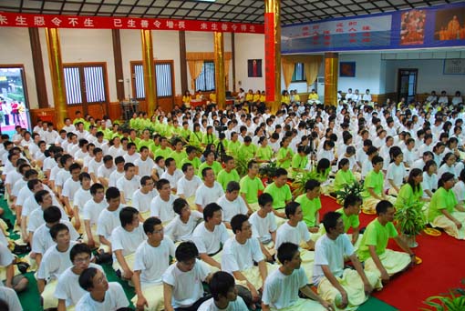 19时30分,学员们在道伟法师的指导下,虔诚地实践了打坐参禅,修心悟法。法师妙语不断,学员们掌声阵阵,道伟法师用自己渊博的知识与精深的修行告诉学员们如何调身,如何调心,使学员们在很短的时间内体会到参禅的意境。