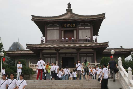16时30分,学员们在辅导员的带领下分组列队,整齐地参观了法门寺及法门寺博物馆。学员们仔细聆听讲解员的讲解,有的认真记录,有的拍照留念,更有的虔诚礼拜。虽然参观的人数很多,但学员们仍秩序井然,大家都沉浸在对珍宝及佛教历史文化的赞叹与仰慕之中……