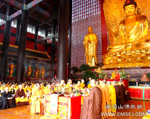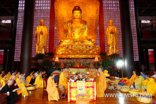 2008年7月5日,峨眉山大佛禅院准提法会举行到第五天。是日晚上6时,参加法会的大众同发菩提悲心,在大佛禅院大雄宝殿奉佛立坛,设放冥阳两利瑜伽施食功德焰口。大众礼请大佛禅院副寺镇果法师主法,经宣秘典,教演真乘,荐拔5.12地震遇难同胞及十方法界六道群灵,回向冥阳众生,悉获解脱法食。
