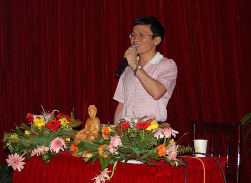 下午2时30分的《业果法则》讲座由佛学院果清法师向学员们主讲。法师从不同角度来举例说明生命都的无限、业果法则和业果法律面前人人平等的道理,并且警醒大家在日常生活中待人处事务必依据业果法则,不恼他人,进而经常帮助周围的人,才能感得快乐的人生。最后,法师还推荐大家阅读《生命不死》、《前世今生》等现代科学畅销书籍,以事实求是和科学理性的眼光来看待此一问题。