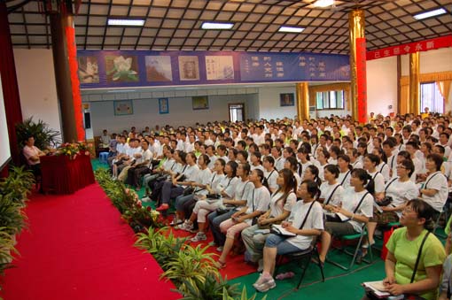 在早晨的集体念诵《普门品》和静坐之后,上午8时30分,陕西师范大学文学院教授、佛教研究所所长吴言生老师给学员们做了一堂主题为《无常·觉悟·慈悲·奉献》的讲座。讲座言简意赅,并在讲解过程中经常穿插一些佛教著名公案及有趣的小故事,引人入胜,发人深省,能够引导学员们积极思考如何更有意义地生活、工作,如何在奉献中成就自己。